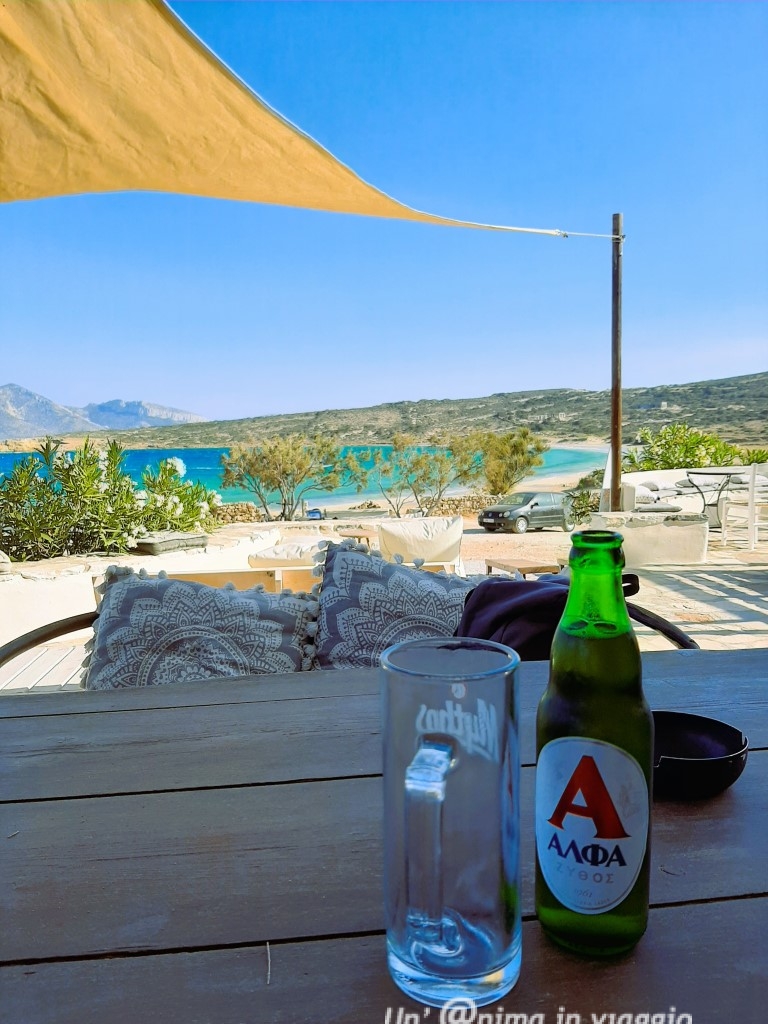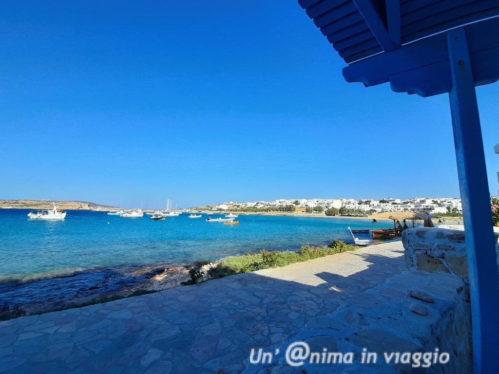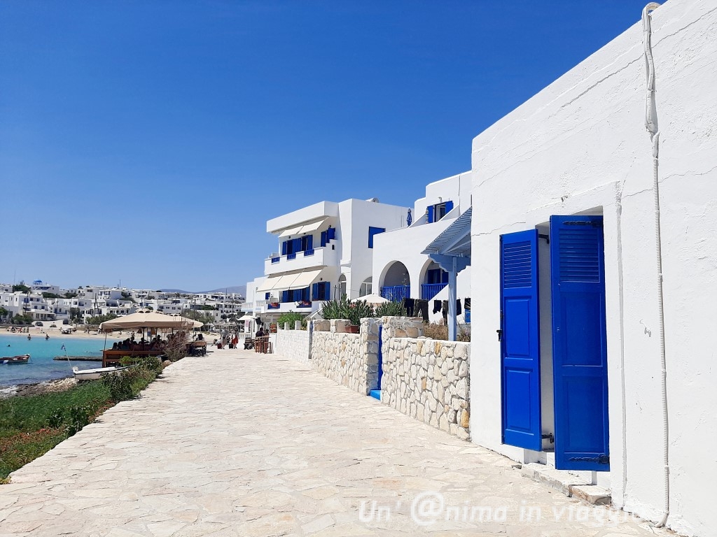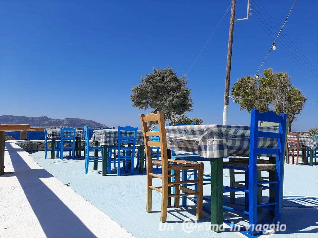 L’offerta comunque è vasta, ci sono tanti ristoranti caratteristici nella chora, e taverne sul mare e sulle spiagge, oltre a locali dove bere qualcosa al tramonto: il più caratteristico è Mylos, il mulino poco oltre il porto, e i localini sul lungomare a fianco a casa nostra, dove allestiscono sugli scogli, o a bordo acqua, e dove, la sera, fanno anche musica.