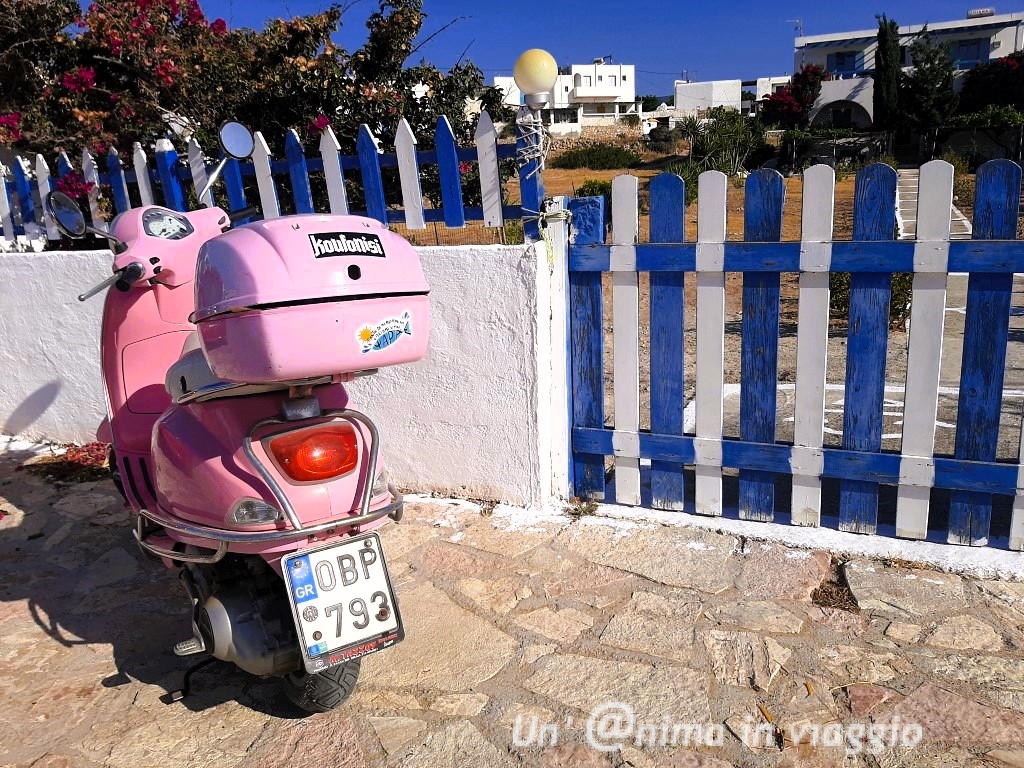 A Koufonissi non ci sono noleggi auto, perché l’auto non serve: è possibile noleggiare motorino o bicicletta (ma quest’ultima non è molto pratica per arrivare alle spiagge), e a mio avviso si può fare a meno tranquillamente di mezzi.
