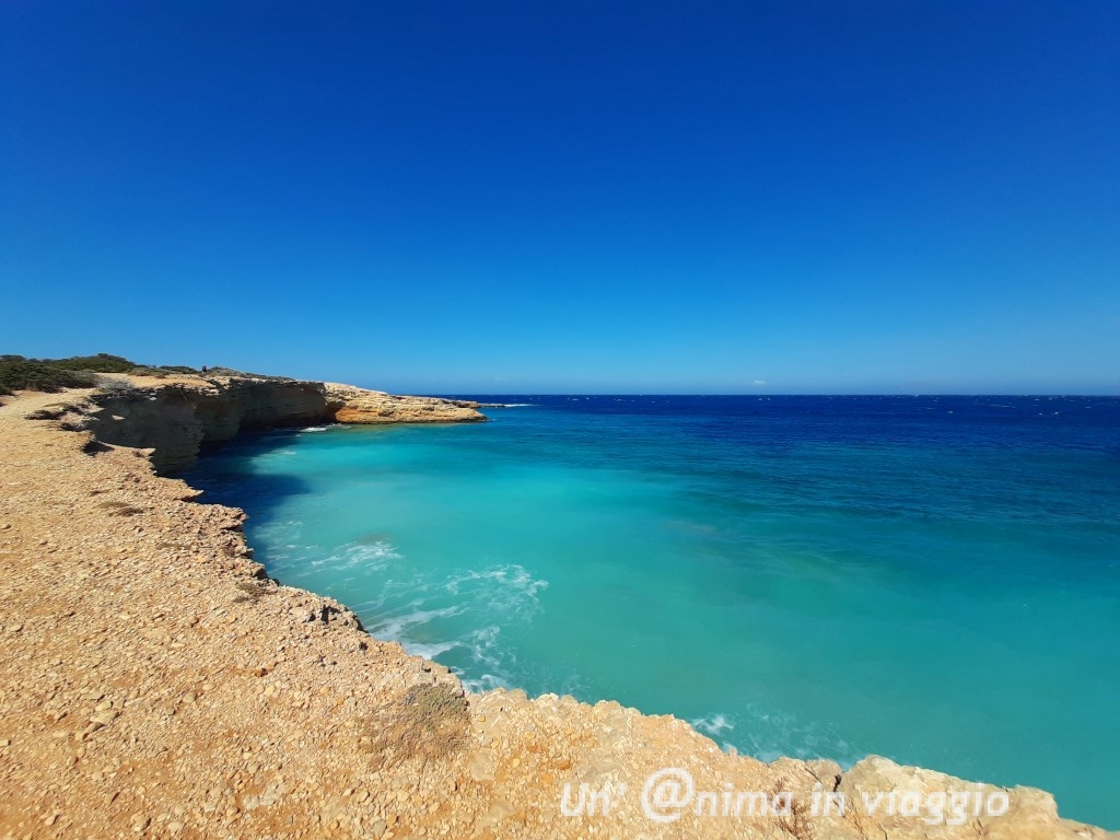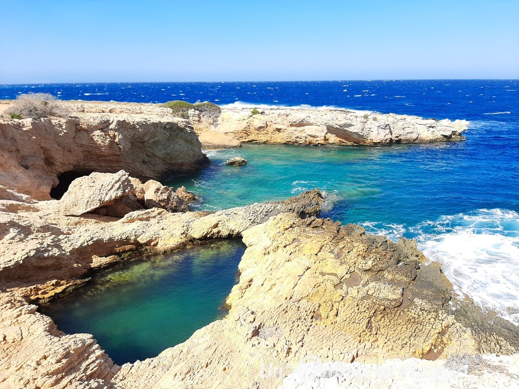 Proseguendo, nel caso a piedi, per un altro paio di chilometri, si costeggia il mare e si incontrano insenature e grotte marine con un acqua azzurissima