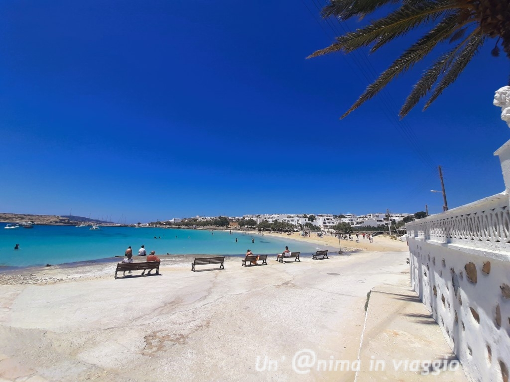Dalla parte opposta della chora, una piazza divide dalla spiaggia cittadina