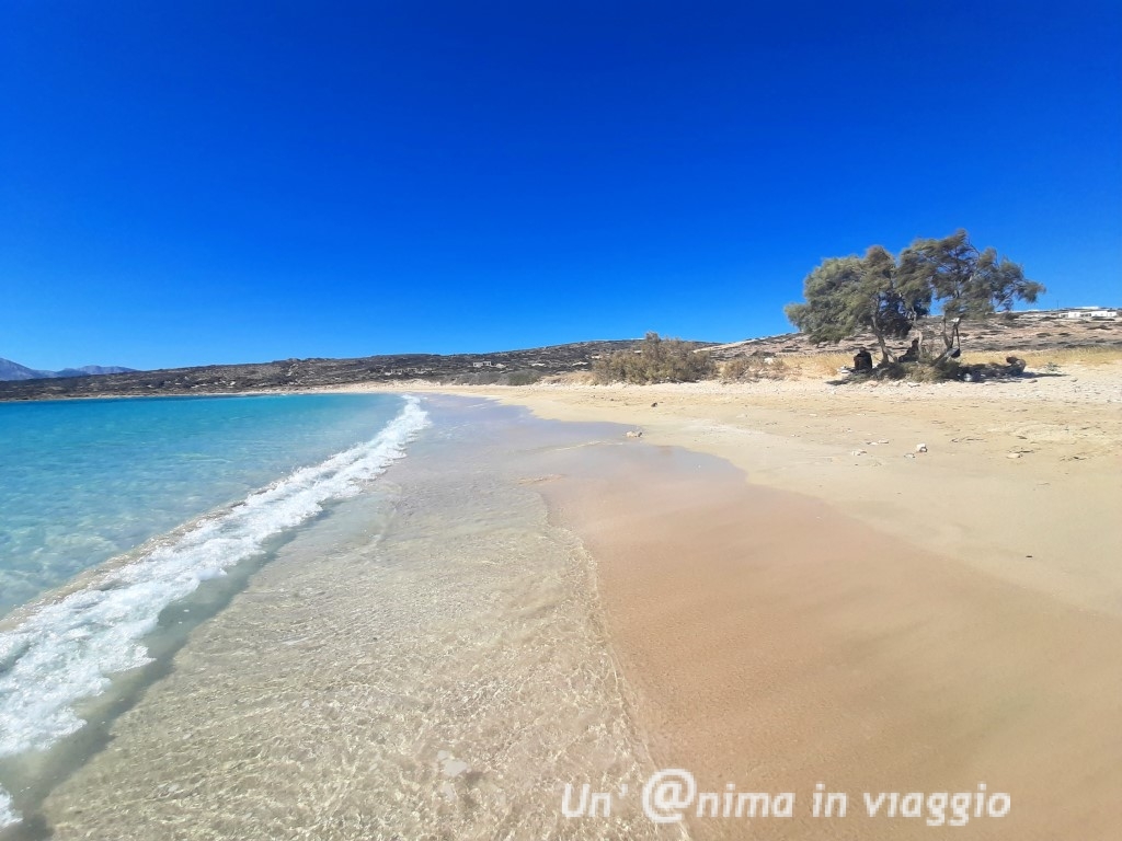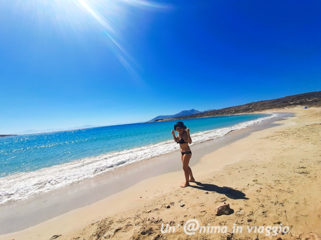Agiassos non mi è piaciuta, nonostante avessi letto essere una, se non la più bella spiaggia dell’isola! E’ parecchio lontana da raggiungere da Plaka, e c’è un lungo tratto di strada non asfaltata da fare: all’arrivo abbiamo trovato una spiaggia con sabbia grigia mista a sassi grossi, che sembra più il letto di un fiume, che una spiaggia di mare, con colori niente di che.. Sospetto che non ci fossero le condizioni giuste, ma davvero sono rimasta molto perplessa. Non ci siamo neanche fermati.