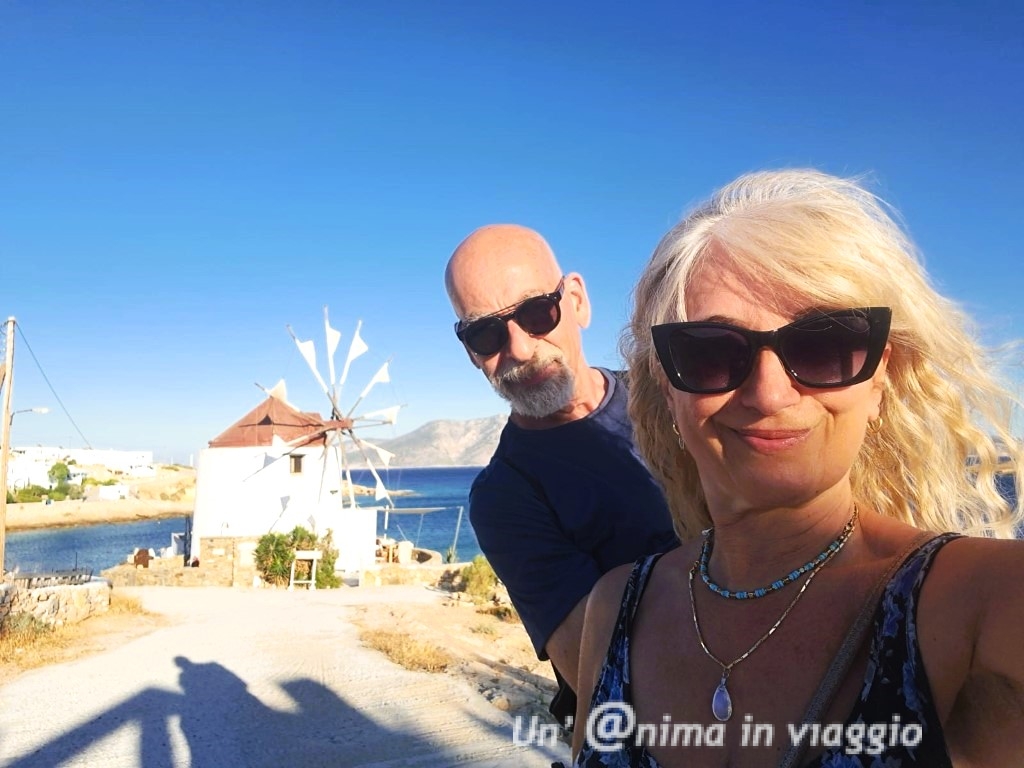 Qui rimaniamo senza parole .. c’è un belvedere strepitoso sulle Cicladi.. e dietro un mulino..