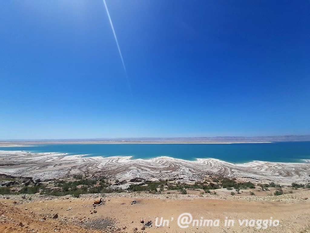 Panorami diversissimi si avvicendano, tutti meravigliosi: rocce, deserto di sabbia, coltivazioni di palme, piccole cittadine, una sbirciata all’ancora chiuso Wadi Mujib, fino ad arrivare alla zona mineraria del Mar Morto, dove è d’obbligo una sosta per gustarsi il panorama del blu intenso dell’acqua orlata dalla spiaggia bianca del sale
