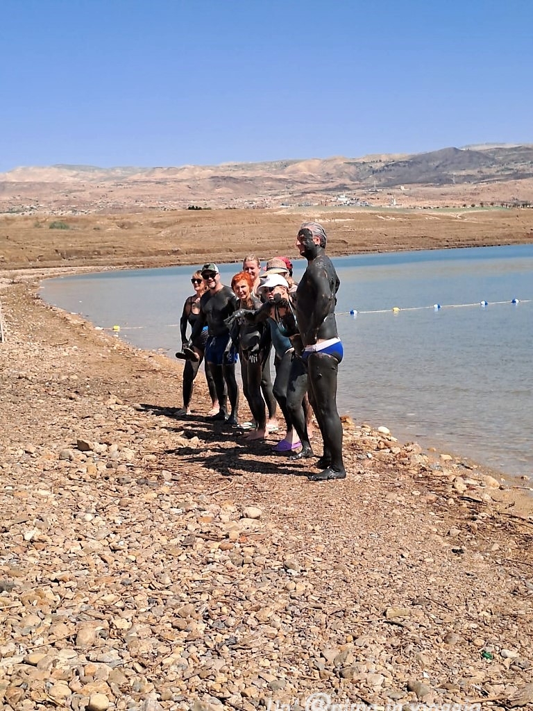 Ma abbiamo fatto il famoso bagno nel Mar Morto e confermiamo che … si galleggia, ed è anche divertente. L’acqua però non è così calda come mi aspettavo