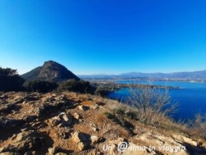 Prendiamo il sentiero che sale verso la punta, e in una decina di minuti ci siamo: di fronte abbiamo il monte della rocca dove eravamo prima