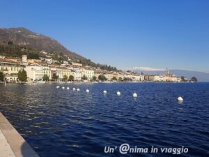 Il lungolago di Salò, sulla sponda bresciana del lago di Garda, mi appare subito incantevole: le sue case e i palazzi eleganti color pastello, con deliziosi balconcini, sono illuminati dal sole che si sta abbassando, ci sono attraenti bistrot fronte lago, aiuole fiorite, e i monti innevati dietro