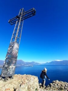Con il fiato corto, arriviamo alla vetta: una gigante panchina azzurra ci appare, con un panorama mozzafiato, a 360 gradi🤩