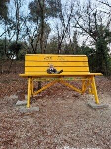 Per salire sulla panchina è stato messo un tronco, non troppo sicuro, ma la cosa bella è proprio salirci sopra e farsi le foto, per poi guardarsi e vedersi come se ci si fosse ristretti🤣, o se si fosse dei lillipuziani..