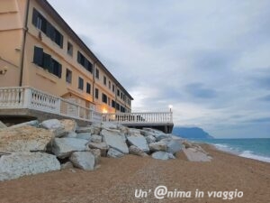 La scelta di Porto Recanati, a 30 km da Ancona, è avvenuta in seguito ad una pubblicità che mi è apparsa, di un hotel non con vista mare, non dove ci fosse una strada da attraversare per arrivare in spiaggia, ma proprio sulla spiaggia, con una terrazza quasi dentro al mare, cosa che non avevo mai visto nei dintorni! Quindi, il mio amore per il mare, e la prospettiva di svegliarmi, il primo giorno dell’anno, guardando il mare, hanno preso il sopravvento.