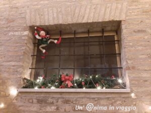 Dal centro del borgo, abbiamo imboccato la strada che scende verso Porta Marina, che aveva attirato la mia attenzione all’arrivo per la sua bella illuminazione, la principale via di accesso alla città, e qui siamo rimasti sorpresi dai tantissimi addobbi natalizi, quasi uno per ogni negozio, e scene di Natale, quadri, arcate, cortiletti, vicoletti, scalinate di gradini in pietra, con luci e scene natalizie, davvero meravigliosi