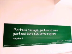 Molto simpatiche sono le scritte su pannelli che si trovano nei corridoi e nelle camere, che inneggiano al mare, e anche quelle in rilievo sulle pareti esterne, che si possono leggere riflesse con l’ombra del sole