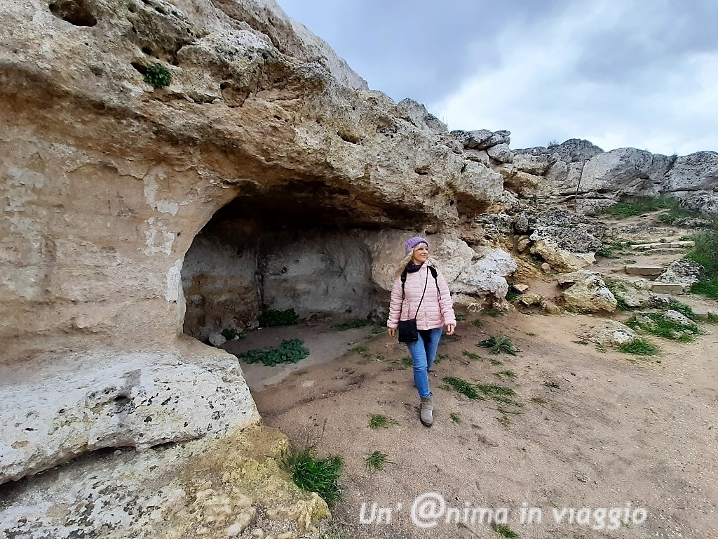 Sul fondo del sentiero si trova un piazzale, raggiunto anche dall’autobus turistico, che guarda l’estremo della città, il canyon e il torrente Gravina, e da lì partono dei sentieri a ritroso, lungo il crinale, dove ci sono alcune chiese rupestri (purtroppo chiuse in quel momento), incastonate nella roccia, e ampie grotte, in cui entrare e immaginare gli uomini della preistoria che vi trovavano rifugio