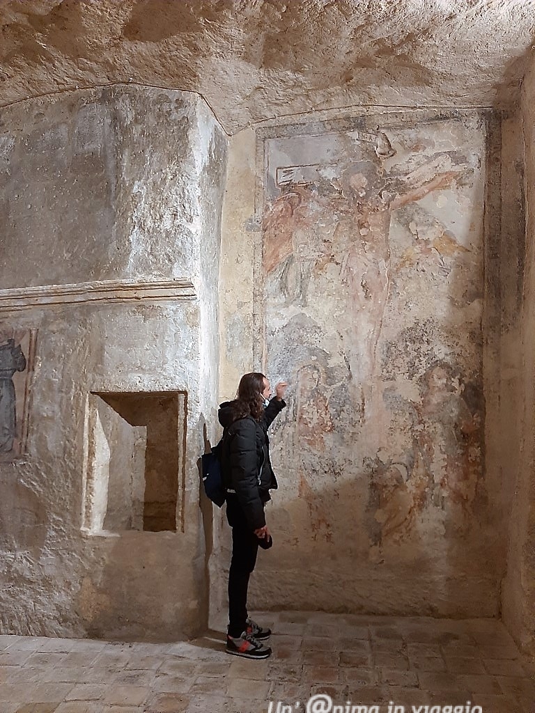 Siamo entrati a visitare la chiesa rupestre della Madonna delle Grazie, e ammirato gli affreschi