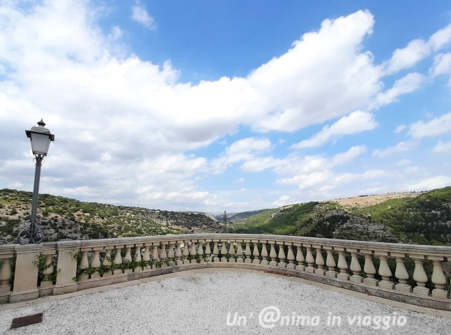 Sul fondo, c’è una terrazza con vista sulla vallata dell’altipiano e sui monti iblei, uno spettacolo meraviglioso!